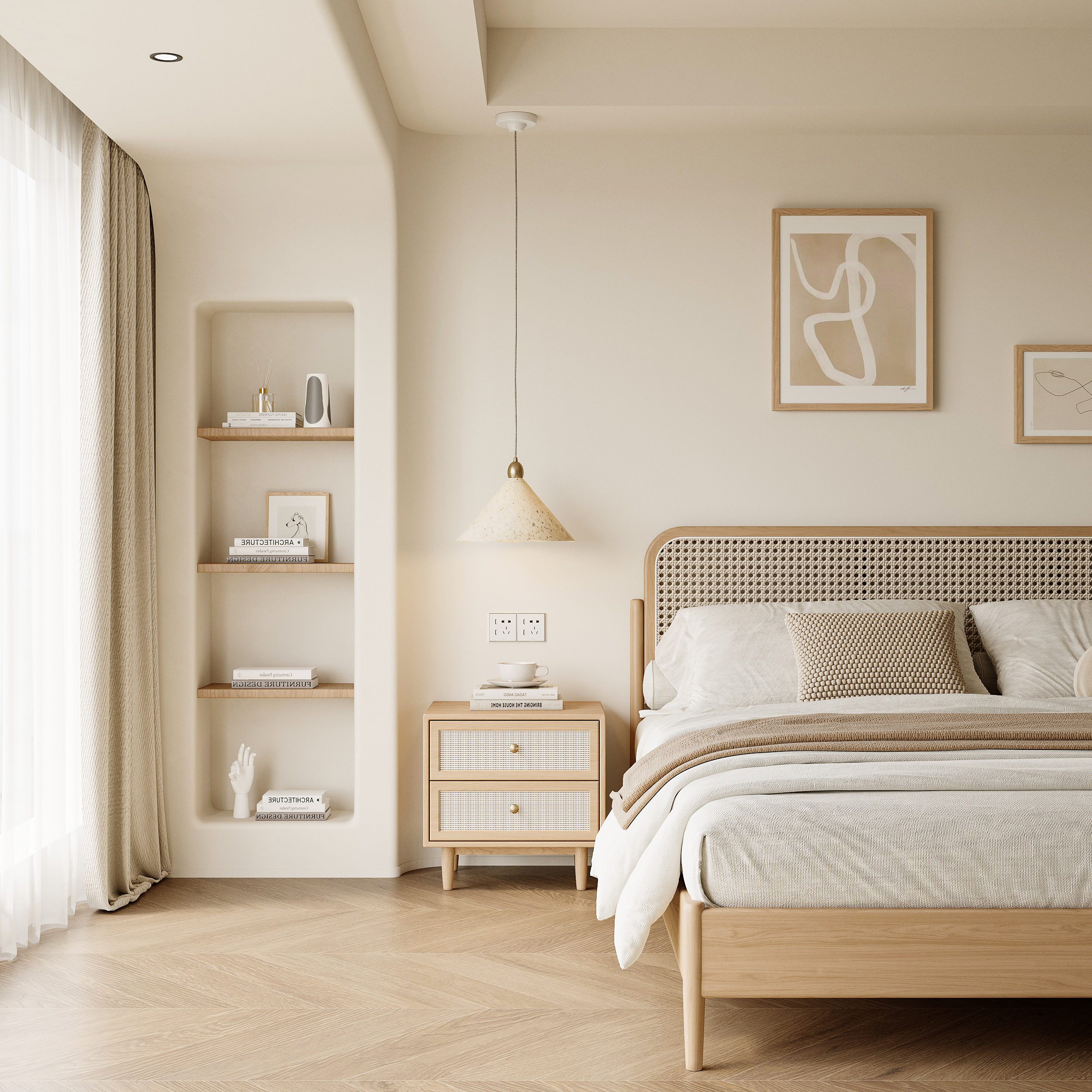 奶油侘寂卧室