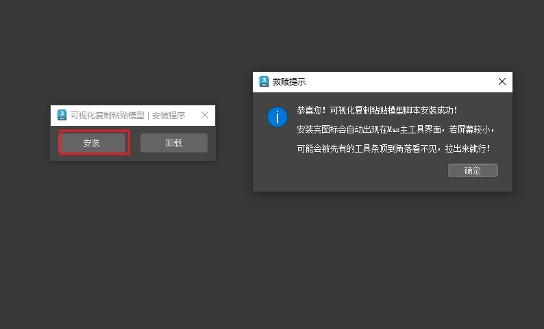 1、把安装包拖进max安装,安装完成后,图标会自动出现在主工具界面。卸载无残留