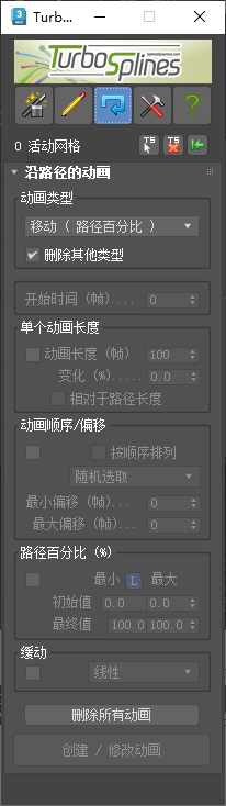 该工具会自动将路径变形修改器分配给预设或自定义网格,并帮助您快速生成许多样条线驱动的动画,您可以通过友好的界面轻松控制这些动画。